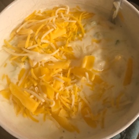 Once it is completely mixed, cook for at least 3 minutes, whisking frequently. Then begin slowly whisking in your cream and milk.