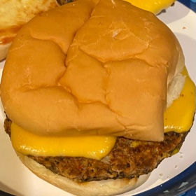 Serve on a bun with desired toppings like mayo, salsa, sour cream, cheese, lettuce, tomatoes, etc.