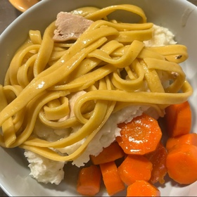 *You can put veggies in with the noodles instead of on the side. Something like fresh carrots, you'll want to add with the noodles. Veggies that are already cooked like corn, add towards the end, with just enough time to warm them up.