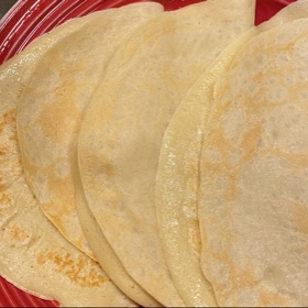Using a ladle, pour a small amount of batter into a nonstick skillet on medium or medium low heat. Spread thin. Cook until lightly browned on each side and easily lifted, just a few minutes.