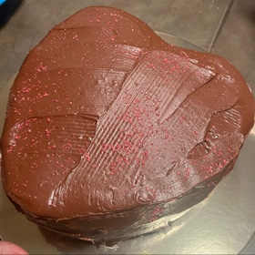 Fill and cover the top of your cake with a generous amount of ermine frosting and top with the other cake. Smooth the sides with an offset spatula. Let sit a few minutes so the frosting can "set".