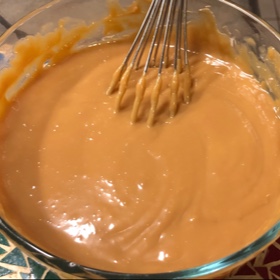 Remove the dish to a cooling rack. If it is too thick, whisk in a small amount of milk.
