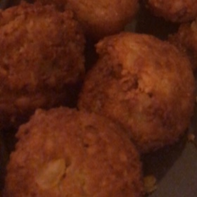 Put several inches of oil in your pan and heat to 360-375 degrees. Fry one inch balls in small groups until brown all around. (*3)