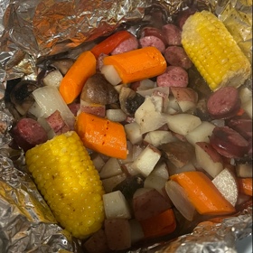 Place everything in your packet. Brush everything with melted butter and sprinkle with salt and pepper.