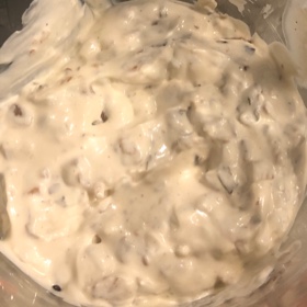 Carmelize the onions with the olive oil, then whisk together with the remaining ingredients.