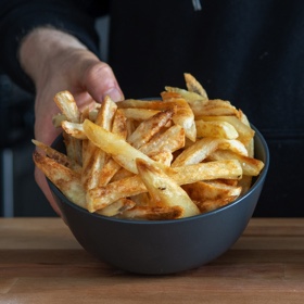 *The exact amount of time your fries take to crisp and brown is dependent on the type of potatoes you used, the size of your fries, and your oven.