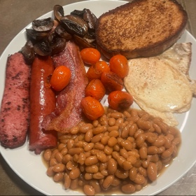 While the basic components of the English breakfast generally remain the same, there is a lot of room for variation. This recipe is more of a guideline.