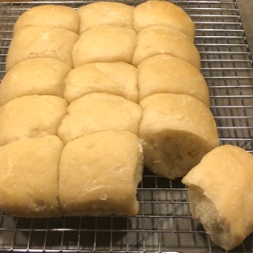 Divide into fifteen 2 oz. rolls and line up in your pan. Don't mess with the dough a lot, just loosely shape it.