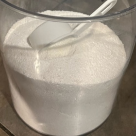 Put the gel through a food processor in small batches to blend smooth. It will puff, so don't try to put it all in at once. Put the resulting marshmallow fluff looking product in a bucket or container with a lid for storage.