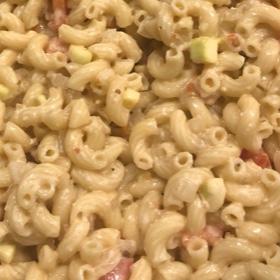 The amounts of mayo and dressing given are really just a starting point. The pasta will absorb a lot as it sits, so you'll need to check it before serving and add more. Make sure you have plenty on hand.