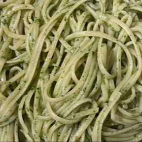 Stir the pesto into the pasta, drizzle in more olive oil if desired, and serve immediately.