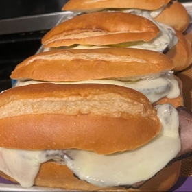 Split rolls using a u-cut and line up on a lined baking tray. Top each bottom half with several slices of beef followed by 2-3 slices cheese.