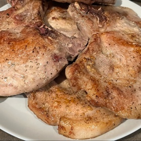 Season pork chops generously with salt and pepper. Place in vacuum-seal or zipper-lock bags with any aromatics you are using. Seal bags and place in water bath for the amount of time you need.
