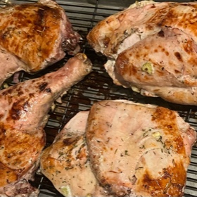 Put the breasts, and wings if you are using them, in their own bag(s) and the legs and thighs in other bags and add any items you are using. Seal.